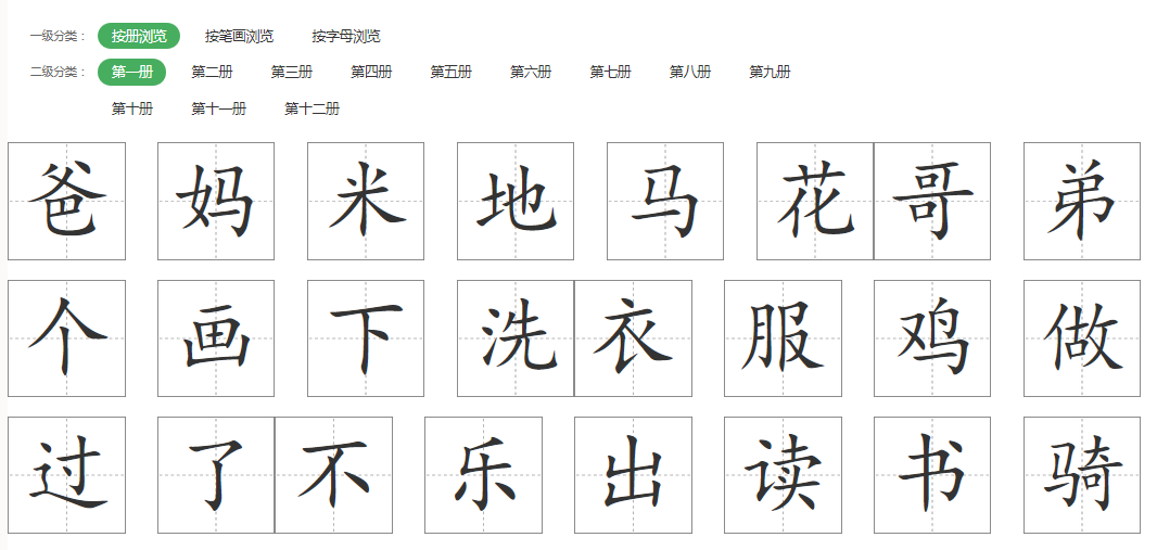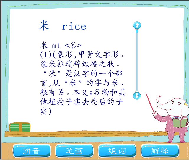汉字拼写,提供人教新课标要求3000个常用汉字动画资源;所有生字内容都要求依据人教社现行教材开发,与新课标教材内容同步;识字资源展示形式要求风格活泼可爱,趣味性强;所有识字内容都要有可交互性动画实现;识字内容必须包含汉字的读音、笔顺、图例、字义扩展等模块;词语解释包含英语对照和扩展汉语注音和解释;识字笔顺动画要包含每个汉字的一笔一划的动画演示,辅助小学生的汉字学习,使其对汉字有全面深刻的认识。